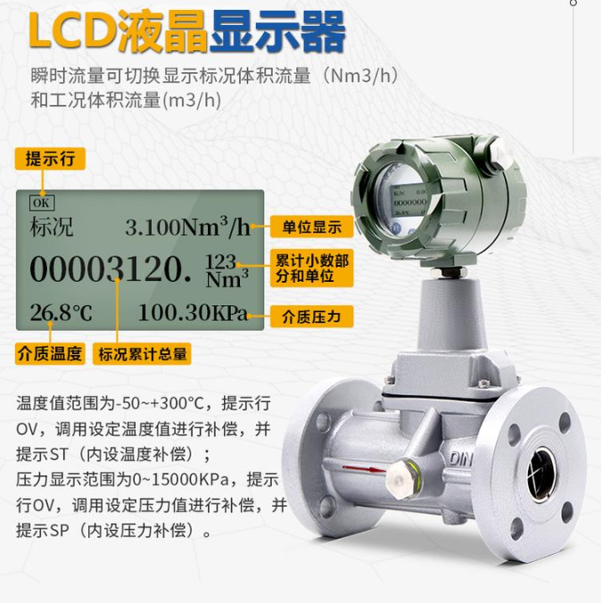 2、就地顯示溫度、壓力、瞬時流量和累積流量。
